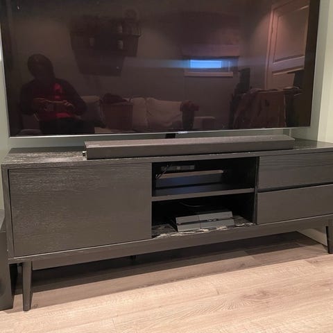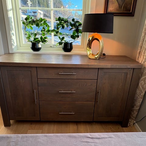 Mørkebrun skjenk. Veldig fin å ha i en spisestue.