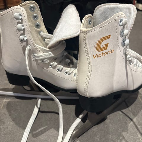 Skøytene er brukt noen få ganger. Den ene skøyten har et lite bruksmerke, se bilde.