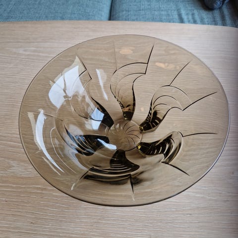 Iittala dekorasjonsbolle laget av klart glass med blå detaljer. Egnet som dekorativ gjenstand eller til oppbevaring av små gjenstander.