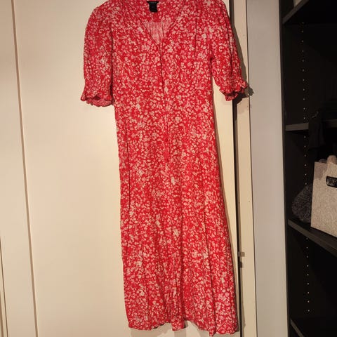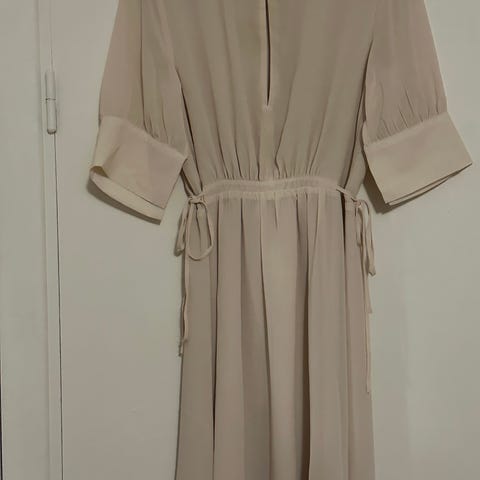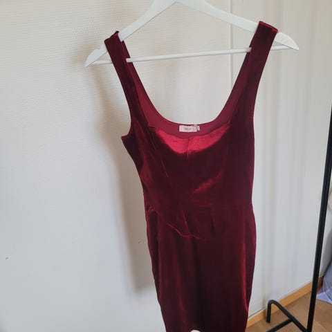 Lindex festkjole i størrelse S, fargen sølv, laget av polyester. Kjolen har en v-formet utringning og splitt foran. Kan brukes som ballkjole. 150kr eller bud