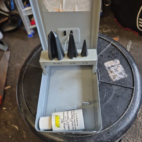 NoviPro Multi Mat hullsagsett med flere størrelser, levert i en plastkoffert for oppbevaring og transport.
