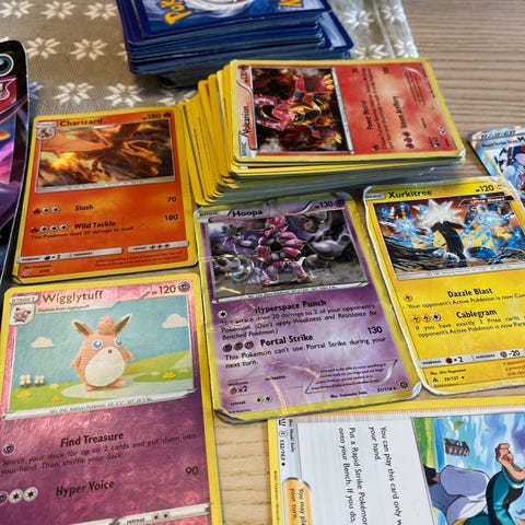 Pokémon Kortspill samling som inkluderer en Tinn-boks, ca 20 Pokémon-kort 1 mystery spesialkort. 90 kroner per bilde. Begge for 160.
