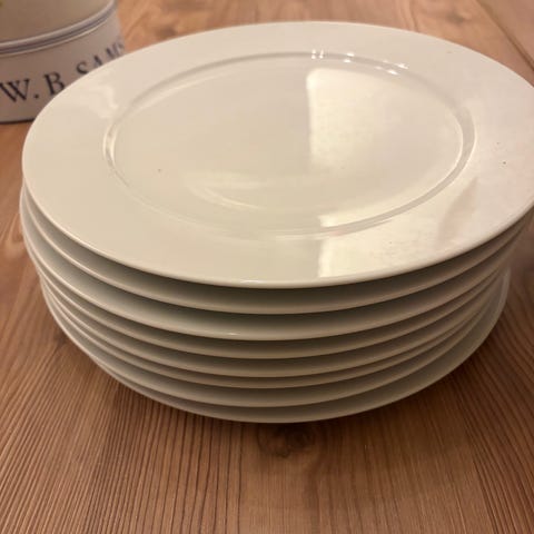 Fine tallerkener gis bort da vi har fått nytt servise. De er helt strøkene og har ingen bruksmerker.