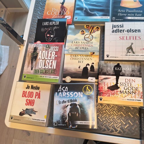 6 lydbøker på cd selges samlet for kun 100kr. Fire er helt nye og plastforseglet, de to andre er pent brukt med ripefrie disker.