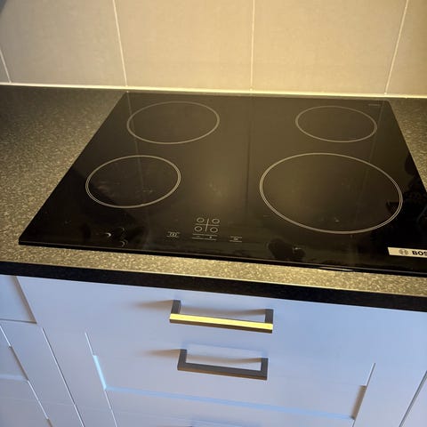 AEG keramisk koketopp med fire kokeplater. Overflaten er laget av keramisk materiale som gir jevn varmefordeling og enkel rengjøring. Passer for bruk i kjøkken for matlaging.