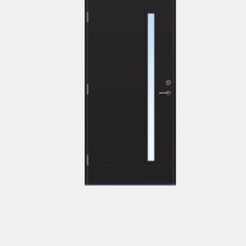 Swedoor Unique 01 92X210 V1 innerdør i hvit farge. Døren har mål 92x210 cm og leveres med tilhørende håndtak og beslag fra Habo. Materialet og designet er tilpasset for innendørs bruk. Liten skade nederst på begge sider, se bilder.