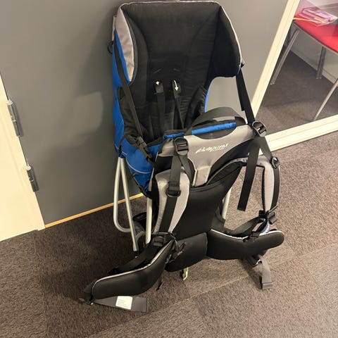 Bergans bæremeis Kids trekking. Må hentes. Pent og lite brukt. Sol-/regnskjerming («tak») medfølger.