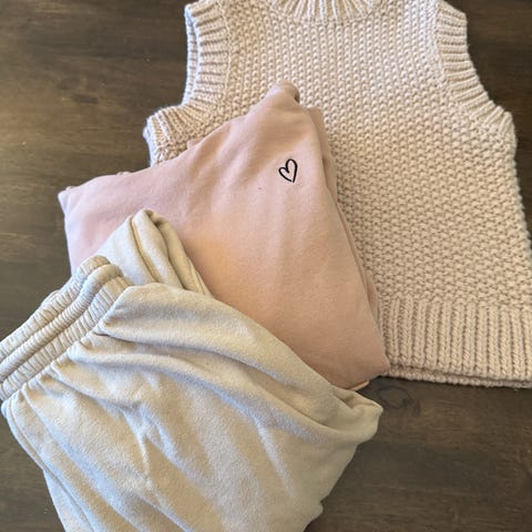 En joggebukse og to gensere i størrelse XXS fra Gina Tricot. Selges da det ikke brukes lenger av datter. Selges samlet for 150 kr.
