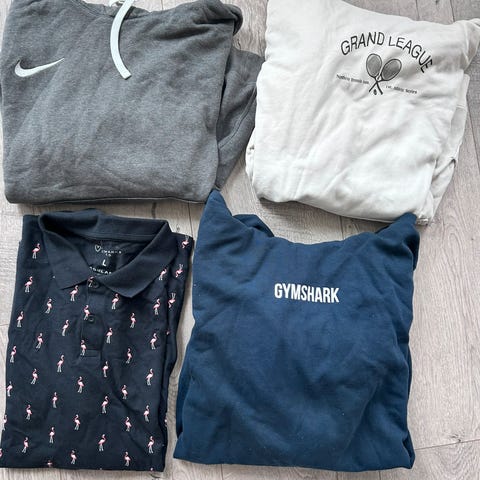 Mange forskjellige klær i ulike størrelser. Blanding av pent brukte og nesten nye plagg. Passer for dame, herre og barn. Selges samlet. Perfekt for videresalg eller et smart kupp.