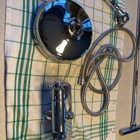 Damixa Eco dusjbatteri med dusjhode og slange i krom. Inkluderer koblinger for enkel installasjon. Uttaket er på toppen og kan festes til Damixa sin dusjstang. Dette batteriet har en overgang til dusjslange.