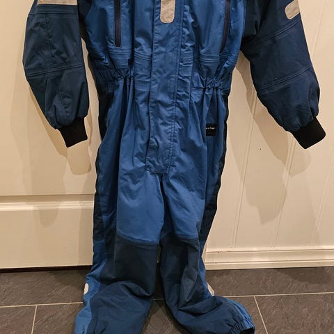 Praktisk og slitesterk vinterdress fra Skogstad selges. Dressen er rød med svarte partier og har refleksdetaljer som gir god synlighet i mørket.