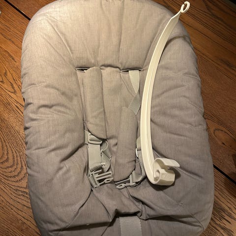 Stokke Tripp Trapp babyset i sort. Babyset inneholder bøyle og ryggstøtte. Pent brukt, kan ikke se noen skader.