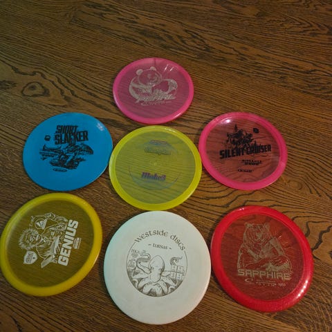 Pent brukte disc golf discer. Pris fra 90 kr og oppover. Kjøper betaler frakt.