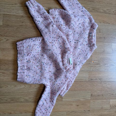 Hjemmestrikket genser i str 2 år. Strikket i dobbel tråd drops air, er en genser som holder på varmen samtidig som den er klø fri. Kommer fra røyke og dyre fritt hjem.