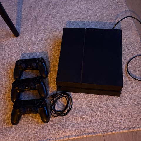 Sony Playstation 4 spillkonsoll svart model CUH-2216A, 2 kontroller og 2 spill.