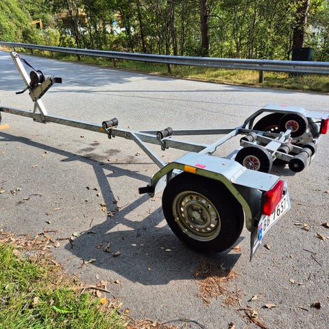For båter opptil ca 22 fot. 2 akslinger og 4hjul gir stabil og trygg transport. Tar båter opp til maks tillatt bredde: 2,55m.Tipp-ramme bakerst på hengeren gjør det både lettere og tryggere når båten sjøsettes eller skal på land. Utfellbare lykter