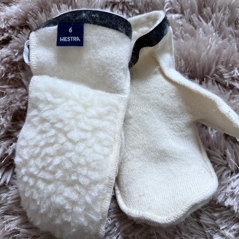 Vintervotter fra Hestra, tykke og varme, fleecefor inni. Str 6. Kun brukt et par ganger. Vann- og vindtett.