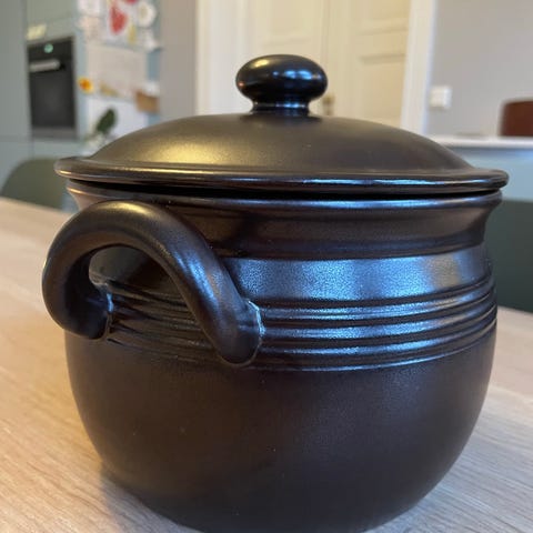 - Romslig form med 8,5 L kapasitet og kobberfarget rist