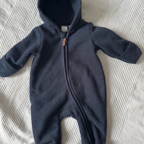 Fin og praktisk vinterdress til baby selges. Dressen er grå med svarte forsterkede partier og refleksdetaljer – perfekt til trilleturer og utelek i barnehage/vogn.