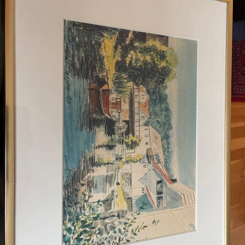 Dette er et reproduksjonstrykk, ikke original eller håndsignert verk. Klassisk motiv som passer godt i stue, gang eller kontor. Solid ramme med passepartout og glass.