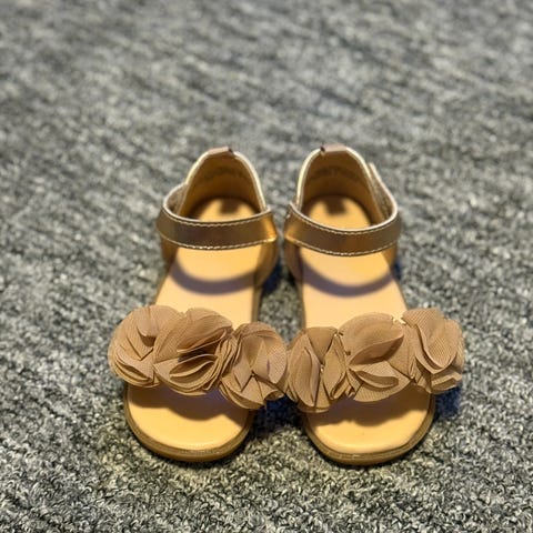 Pene sandaler til jente i størrelse 22 fra hm. Fargen er noe lignende som rosegull.