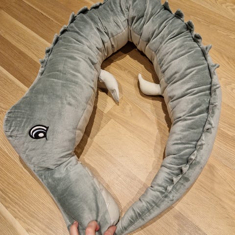 Sengekanten Long Dragon fra Roommate, formet som en lang smal drage med fantasifulle broderte detaljer. Den er godt brukt og har noen flekker, se bilde 4-8, selges derfor for 200 kr. Det er fortsatt mye bruk igjen.