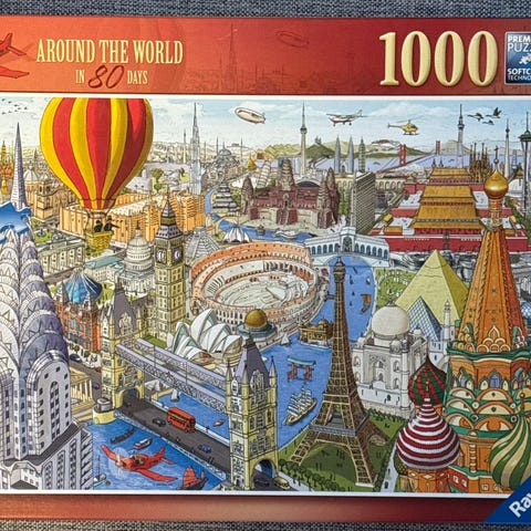 Puslespillet er komplett. Puslet en gang. Ferdig puslet er størrelsen ca. 70x50cm.