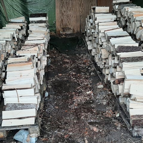 tørr blandingsved, relativt grov kløyvd. brenner lenge, mye gran.