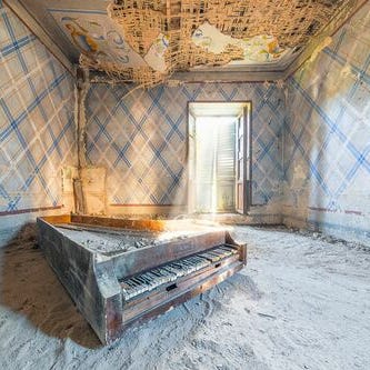 Gunnar Næss glasskunst veggdekorasjon med blåtoner. Kunstverket viser to figurer i silhuett og et hus med en sykkel. Passer til dekorasjon i hjem eller kontor.