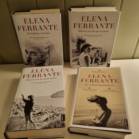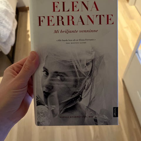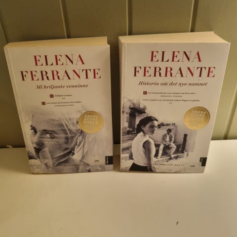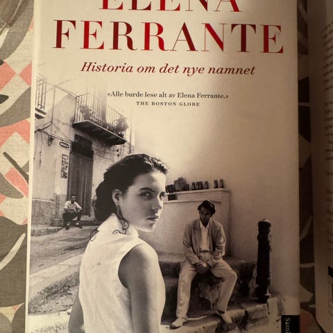 Elena Ferrante Historien om det nye navnet er en bok. Den har en hvit og rød omslag med fotografi i svart-hvitt på forsiden. Boken er skrevet på norsk og er en del av en litterær serie.