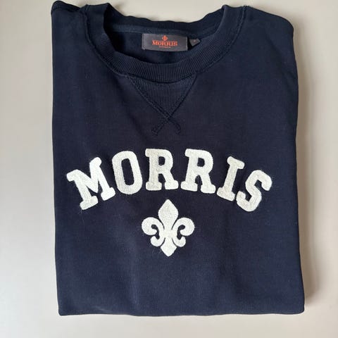Morris genser i grå ull, størrelse S for herre. Genseren har glidelås i halsen og er laget i ullmateriale som gir varme og komfort.
