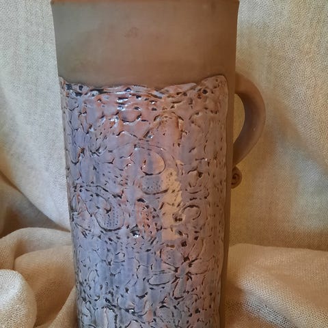 Krukken har noe ru overflate, mens lokket er noe glattere.