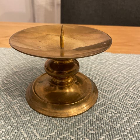 Lysestake med pigg (antagelig i messing eller bronse)