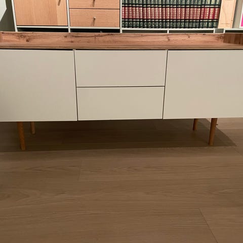 Selger min nesten nye IKEA BESTÅ TV-benk (180x39x41 cm). Kjøpt for 3 år siden, men har stått ubrukt siden. Kun ett lite hjørne i en av skapene som er hakket av (zoom inn andre bildet: høyre rom, venstre innerfront) — ellers som ny.