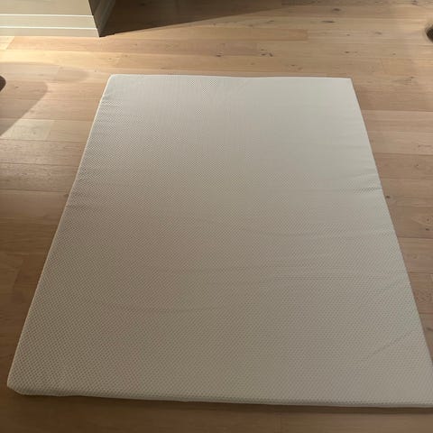 Brukt 1 uke med beskyttelsestrekk på, men for hard sammen med madrassen som også er hard. En liten flekk (se bilde) mulig fra utpakking eller produksjon. Følger med innpakningen.