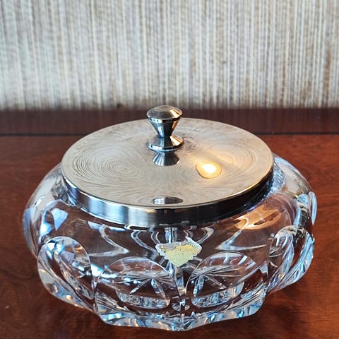 Bleikristall Rund Vase Blå Krystall Håndskåret