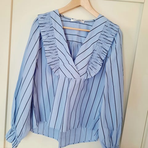 En elegant og tidløs bluse i et lett, glansfullt stoff med delikat struktur. Skjult knappestolpe i front gir et rent og sofistikert uttrykk. Allsidig og perfekt til både jobb og festlige anledninger.