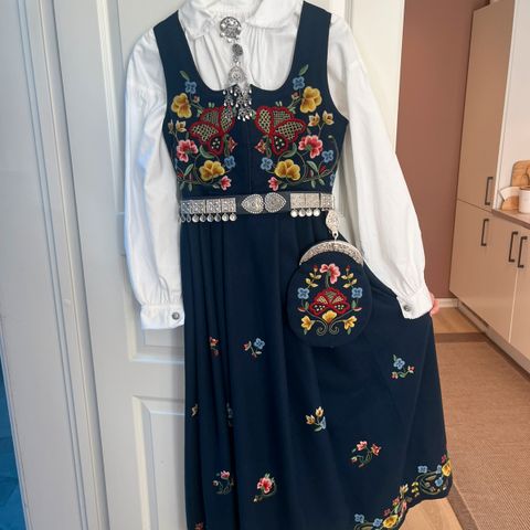 Kjempe fin og veldig godt tatt vare på. Henger i pose. Følger med «hatt»2 Søljer, skjorte, veske og sko, men de er godt brukt. Kan også selges med cape men da blir det 1500 ekstra eller en kort jakke 1000 kr ekstra med lange armen som også hører til. Pris kan diskuteres ved hurtig avgjørelse.