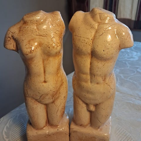 Selger to dekorative veggplater med klassisk torso motiv (mann og kvinne).