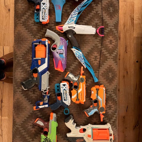 Nerf Rival lekepistol med tilbehør. Inkluderer blå lekekuler og et magasin for ammunisjon. Egnet for lek og spill.