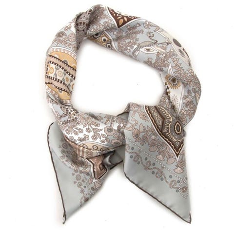 47*47cm YSL rødt og svart ornate lommetørkleskjerf / lommetørkle med gulldetaljer - Unisex
