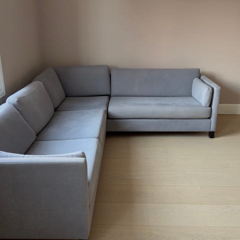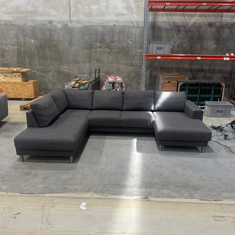 Må hentes, og sofaen kan demonteres i to deler for transport.