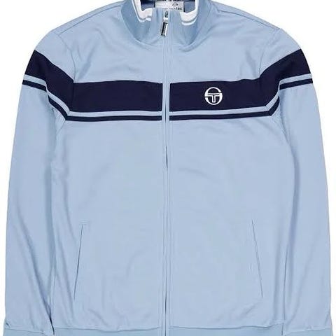 Pent brukt Lacoste Paris Zip-Up Jacquard Track Jacket Blue i størrelse S