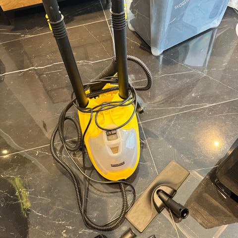 Kärcher SC 1202 dampvasker med tilbehør. Gul farge. Egnet for rengjøring med damp for ulike overflater.