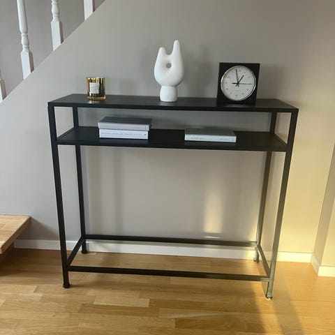 Selger et sort konsollbord, pent brukt, men har fått noen flekker på toppen som ser ut som kalkflekker. Selges derfor rimelig.