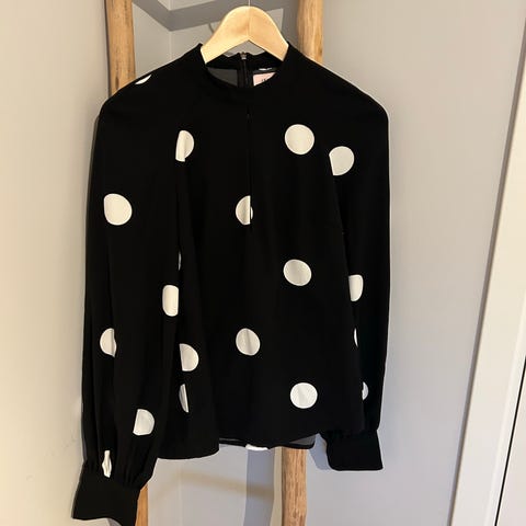 Spesiell omslagskjole i tynt ullstoff 83 % ull, foret, eggeskallhvit, str 34/36, lengde ca 110 cm.