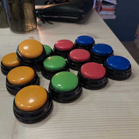 Selger 4 stk lydknapper med opptaks- og avspillingsfunksjon(rød, blå, gul og grønn).