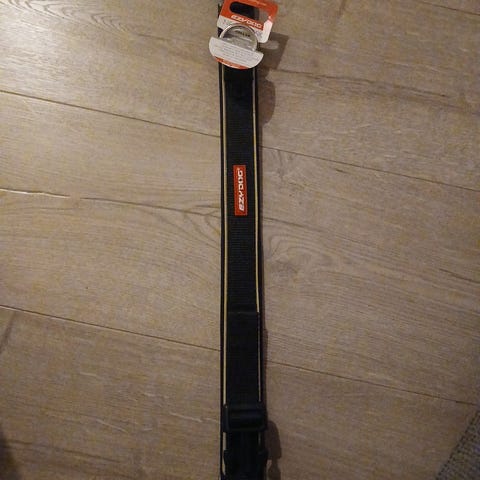 Justerbart band med strikkdemping. Ein kan feste det rundt livet eller bruke det som vanleg kobbel. Praktisk D-ring i beltet.