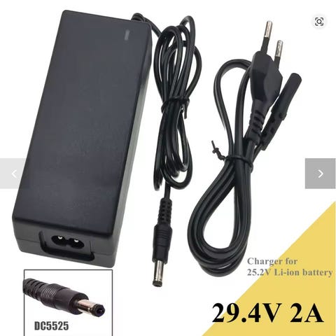 Laderen passer til Li-Ion batterier med nominell spenning 23.9V, 24V, 25.2V, 25.9V (29.4V fulladet), for eksempel elsykler, sparkesykler, hoverboard og andre enheter.