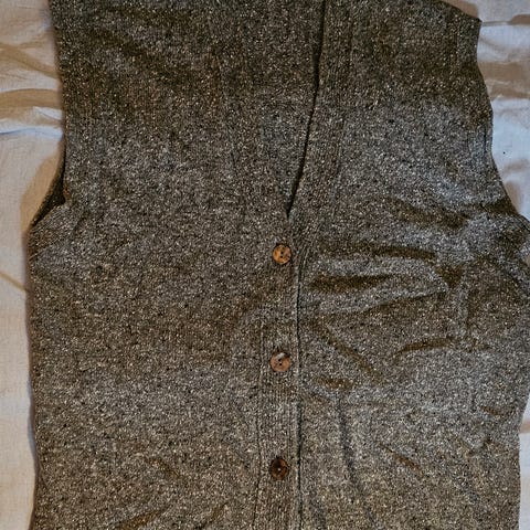 Deilig og myk lyse grå vest i kasjmirull. Den er av merket John Laing, kjent for å lage luksus kasjmir klær i Skottland. Vesten har to lommer foran og er i god stand.